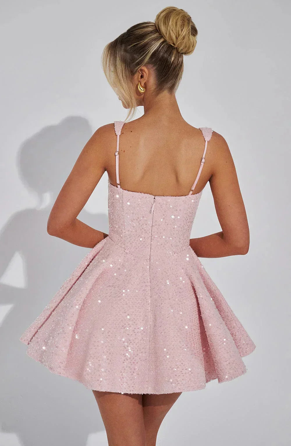 Wytworna, błyszcząca i niekończąco stylowa—Miren Mini Dress uchwyca ponadczasową kobiecość z nowoczesnym akcentem, zapewniając, że będziesz błyszczeć z nieskrępowaną elegancją.