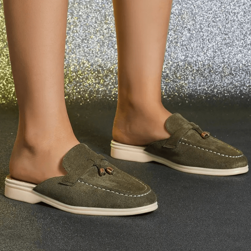 Postaw na świeży i elegancki wygląd z letnimi mokasynami Mori. Ich orzeźwiający zielony kolor, klasyczna sylwetka w nowoczesnym wydaniu oraz miękkie wykończenie sprawiają, że są idealnym wyborem na słoneczne dni. Doskonałe na brunch, spacer po mieście czy codzienne wyjścia – te wsuwane mules łączą styl i wygodę bez wysiłku.