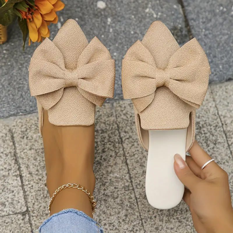 Klapki Damskie Dani – Płaskie Wsuwane Buty z Szpiczastym Noskiem i Kokardką na Co Dzień