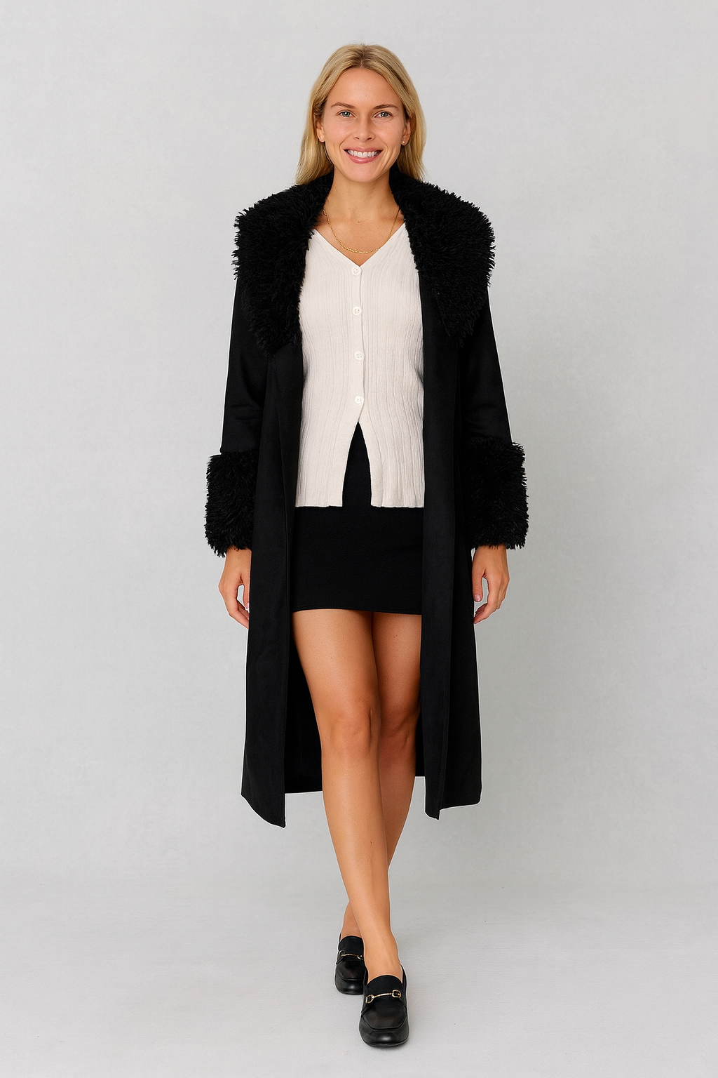 Pristine | Płaszcz Długi z Vintage'owym Wykończeniem z Futra
