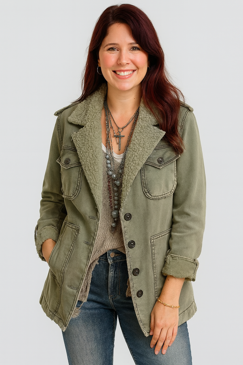 Zinniah | Kurtka robocza inspirowana stylem vintage z wykończeniem Sherpa