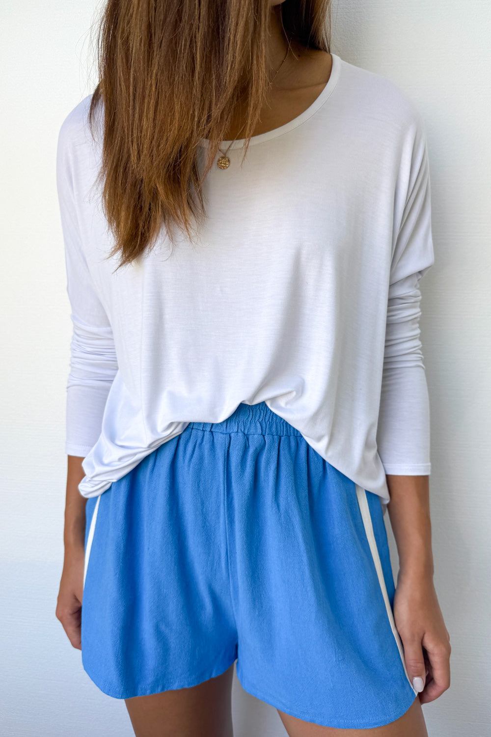 Szorty Courtney to idealne połączenie lekkości, komfortu i stylu – niezbędny element letniej garderoby. Wykonane z oddychającego lnu, zapewniają przyjemne uczucie świeżości, zwłaszcza w upalne dni. Luźny krój i elastyczny pas gwarantują pełną swobodę ruchów, a minimalistyczny design doskonale komponuje się z każdą letnią stylizacją.