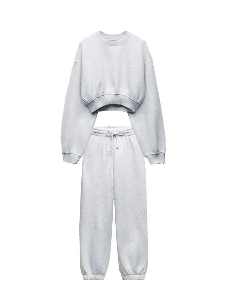 Merel Damski Zestaw Komfortowy – Dwuczęściowy Croptop & Spodnie dla Swobodnego Stylu & Maksymalnej Wygody