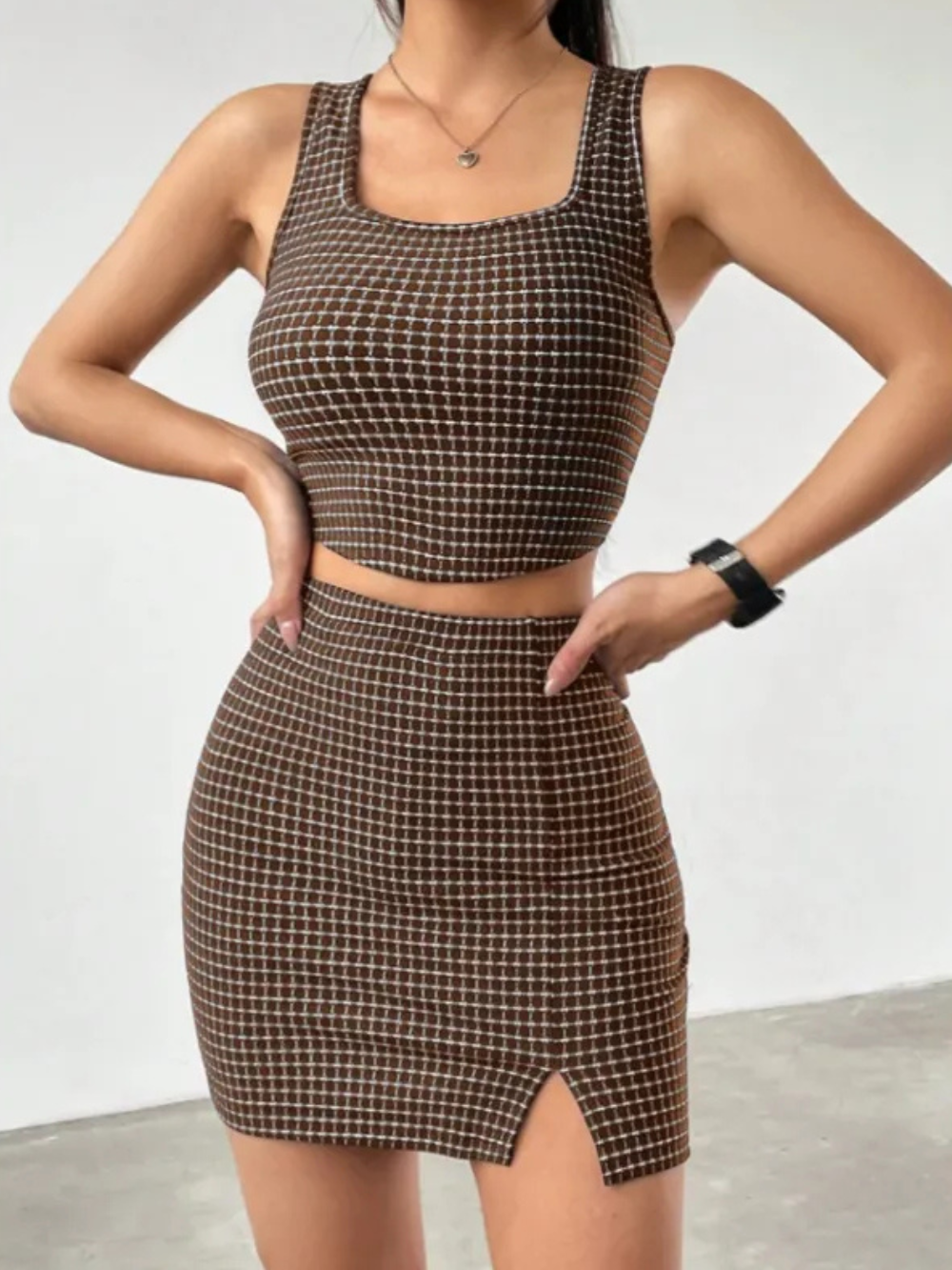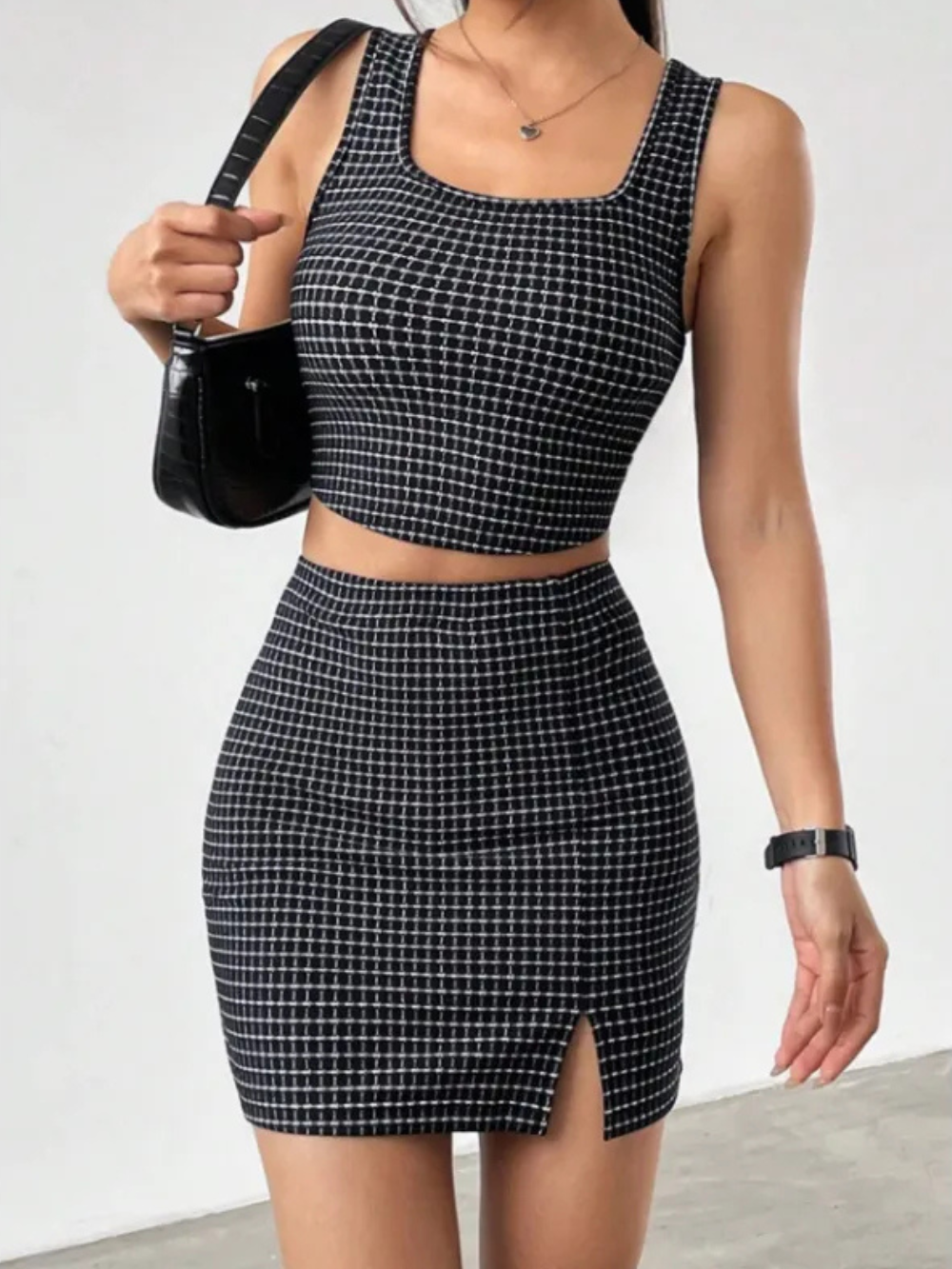 Wnieś odrobinę wyrafinowania do swojej garderoby dzięki zestawowi Solvivra Plaid Chic. Zaprojektowany dla kobiet ceniących klasyczną elegancję z nowoczesnym akcentem, ten dwuczęściowy komplet składa się z taliowanego żakietu i dopasowanej spódnicy w kratę. Idealny zarówno do biura, jak i na niezobowiązujące wyjścia – łączy styl, komfort i wszechstronność.