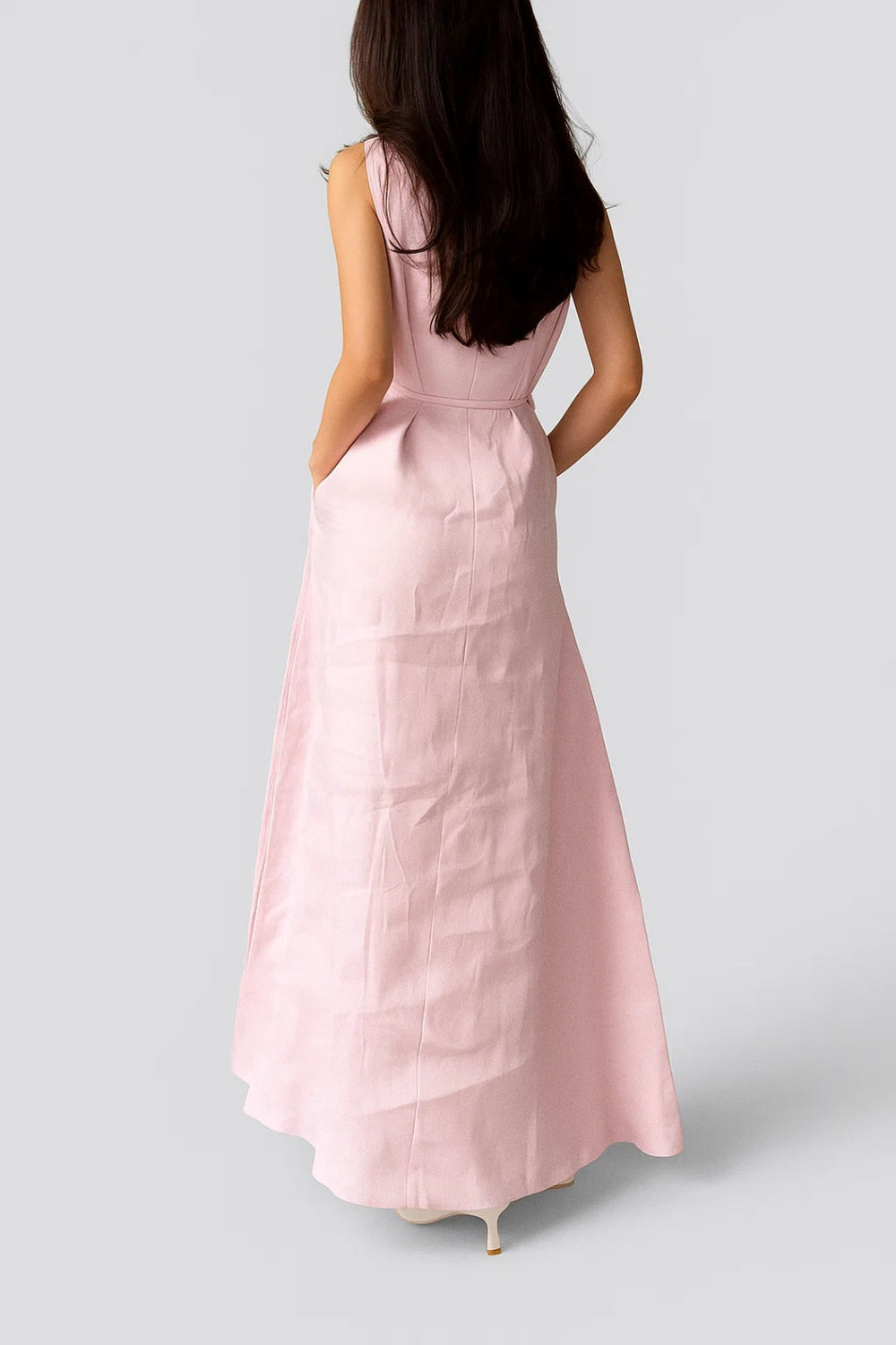 Sukienka Arielle to kwintesencja naturalnego, letniego stylu w eleganckim wydaniu. Uszyta z lekkiego lnu, ta długa sukienka zapewnia smukłą sylwetkę dzięki płynnemu krojowi oraz delikatnej, cienkiej tasiemce w talii. Idealna na ciepłe dni – łączy w sobie wygodę, świeżość i klasę.