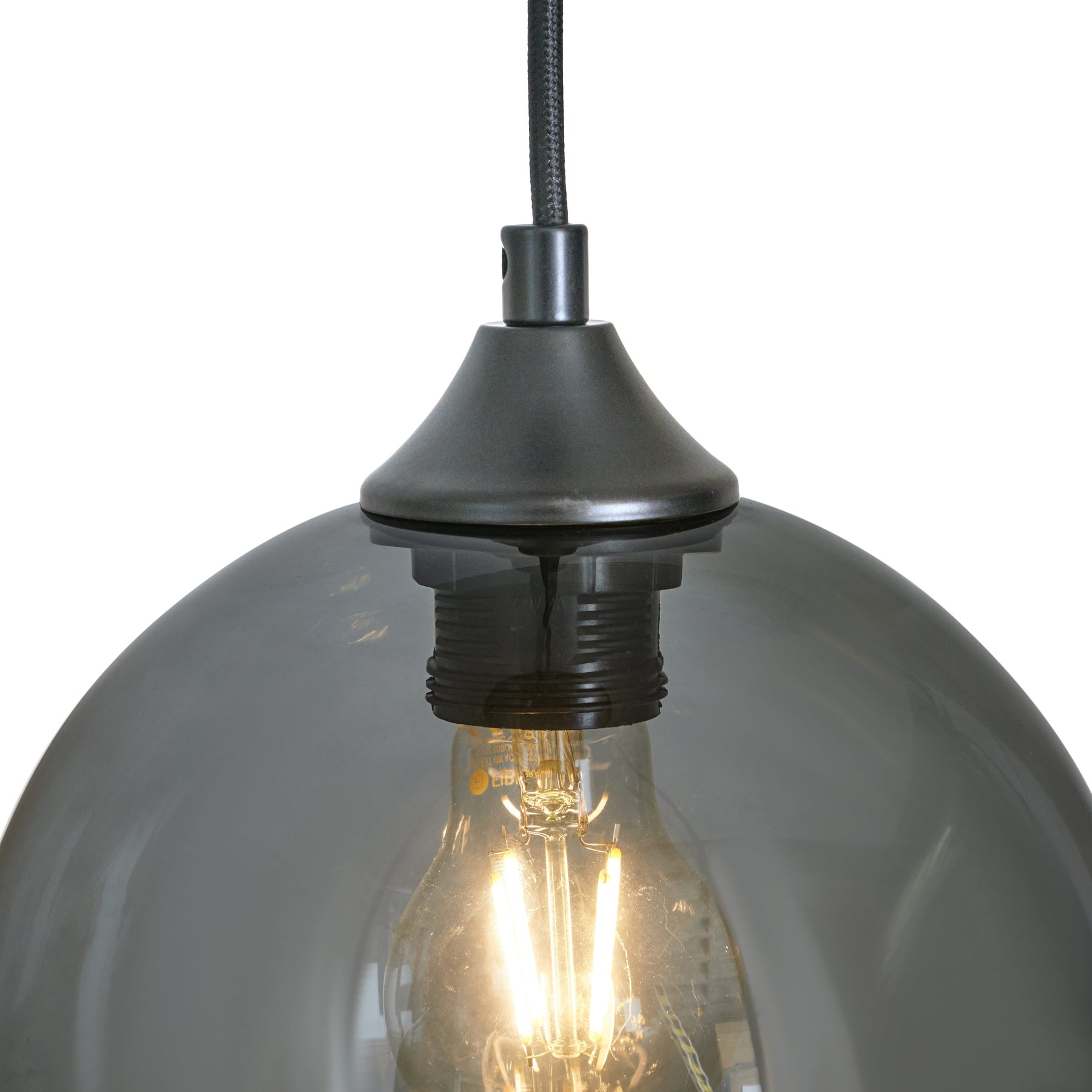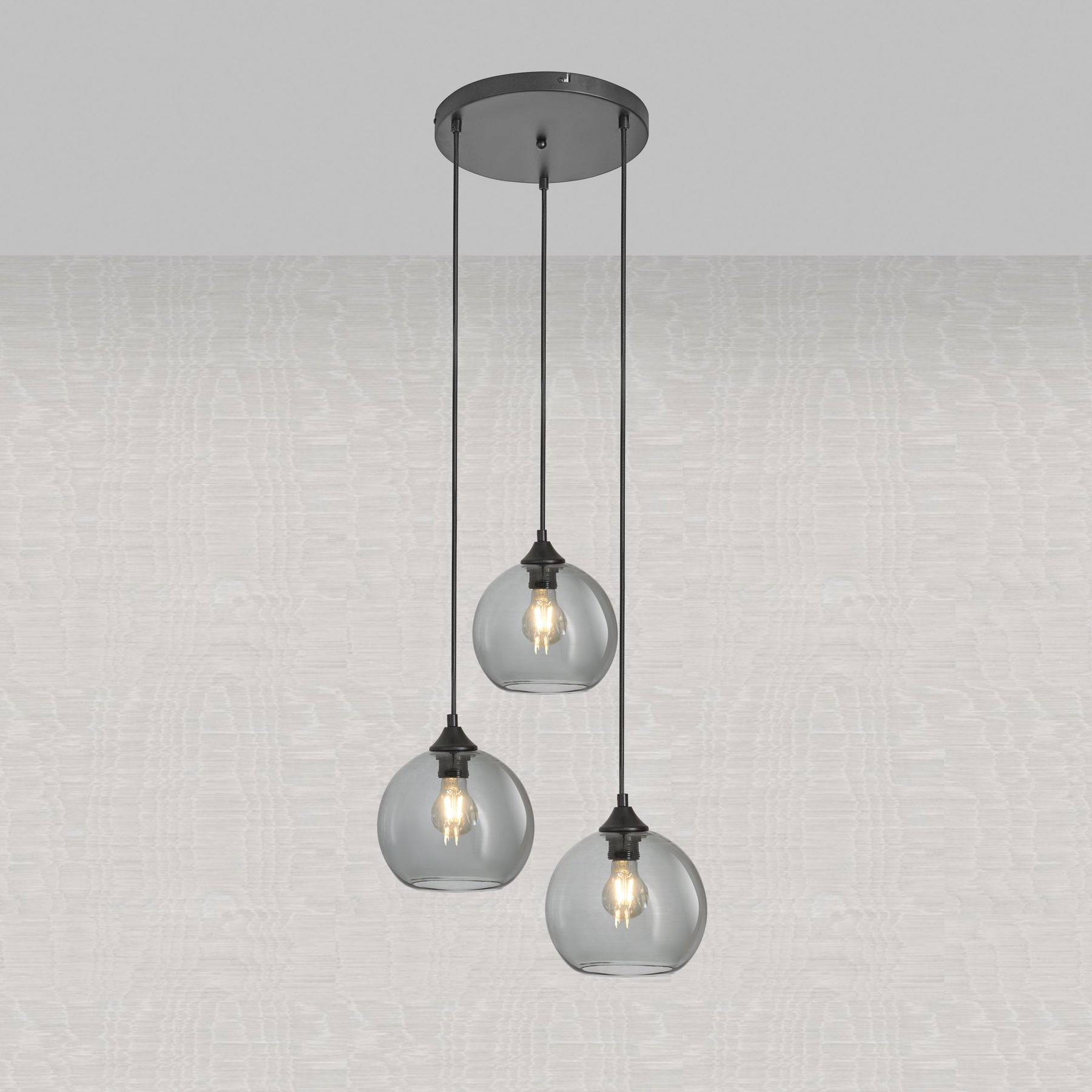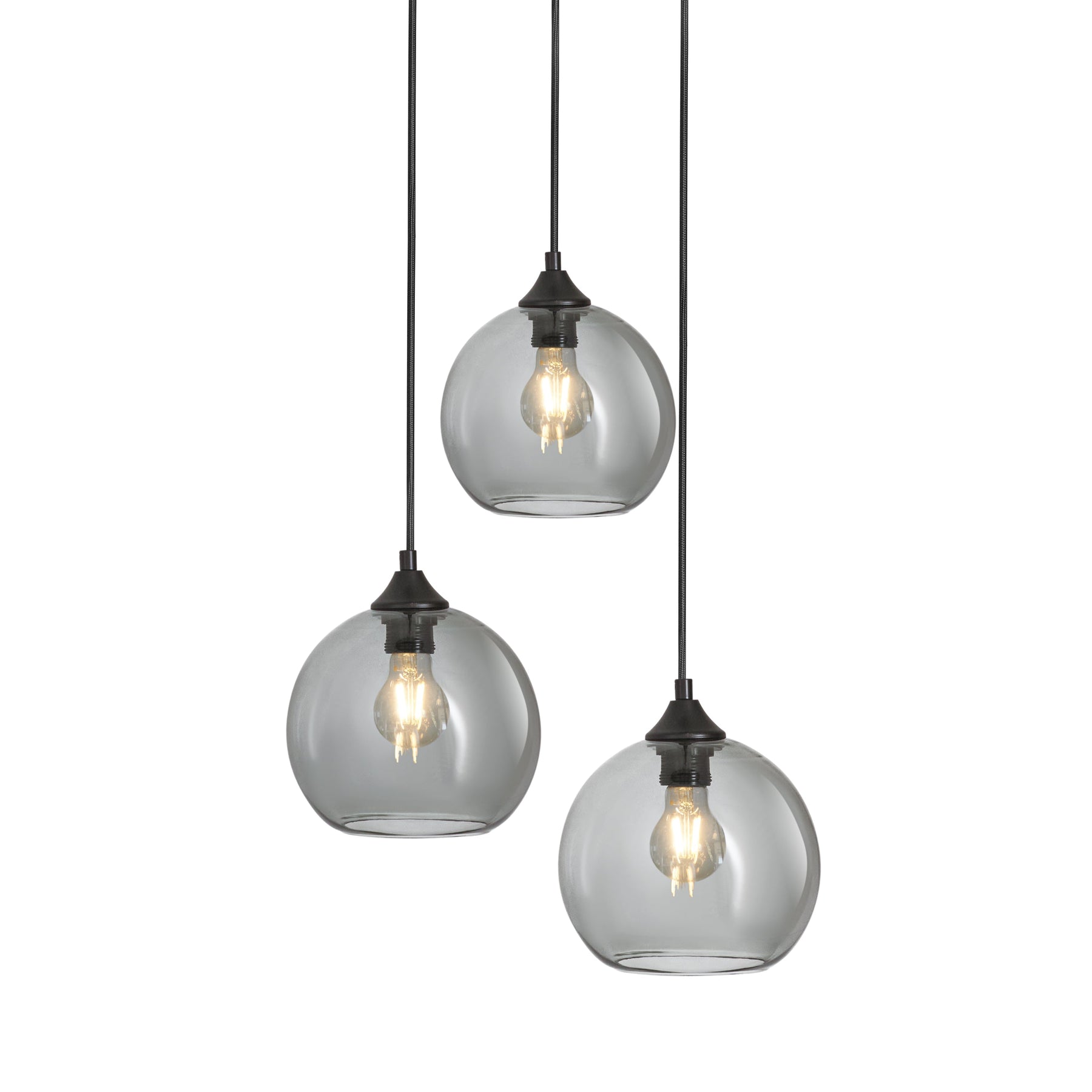 Lampa Wisząca 3-Punktowa Kule Szkło Dymione Czarna Industrialna Salon Jadalnia LED