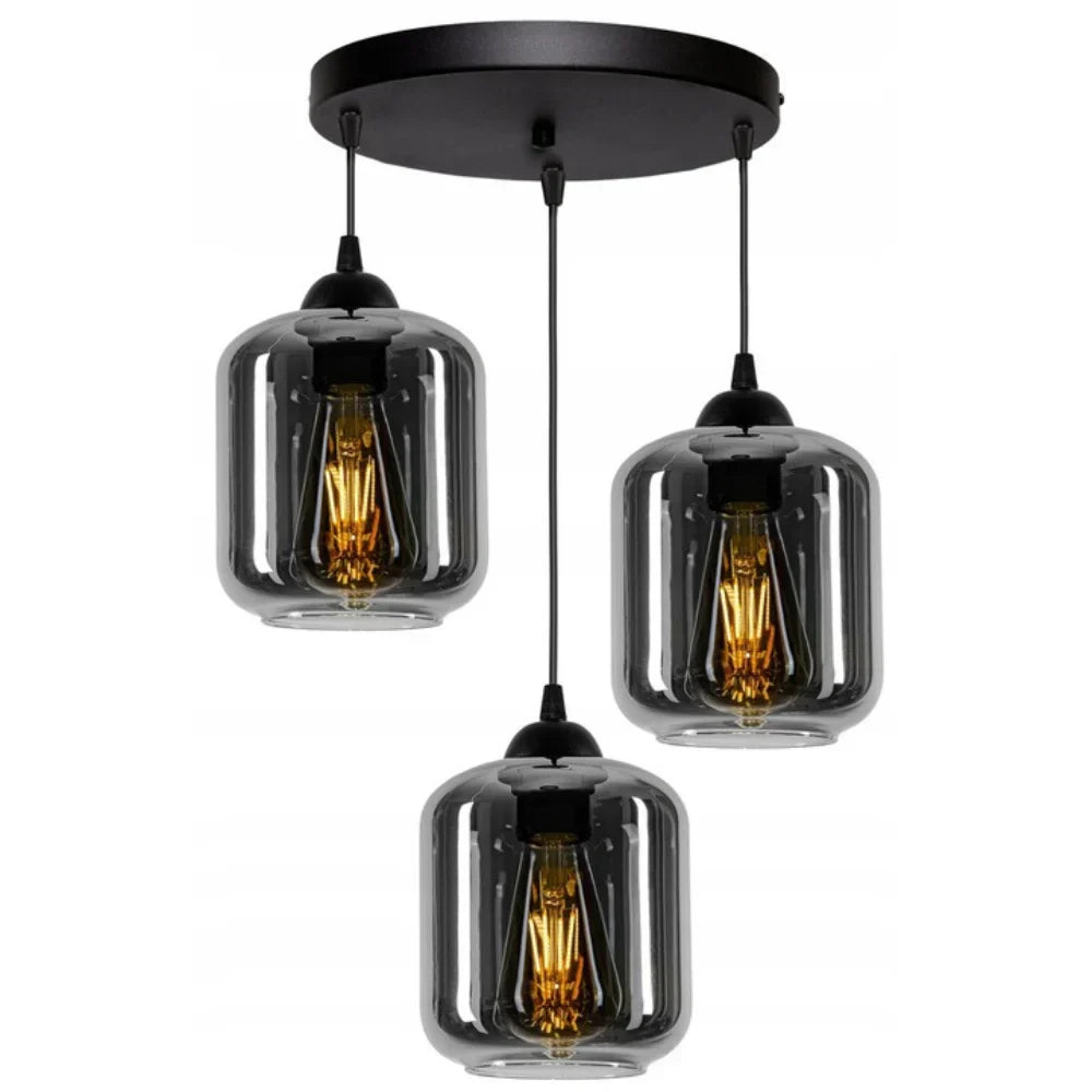Lampa Wisząca – Industrialna 3 Szklane Kule Czarna „Smoke”