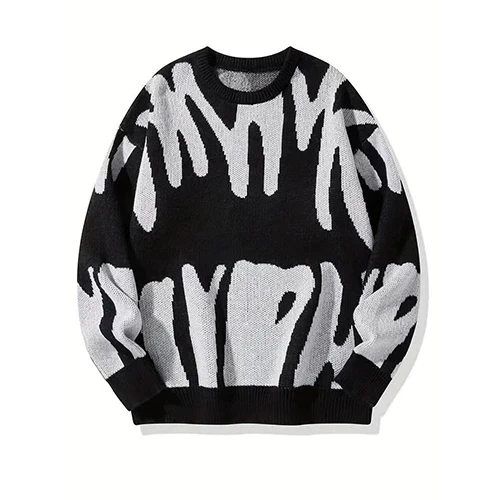 Monica Sweter Damski – Czarno-Biały Graficzny, z Abstrakcyjnym Wzorem w Nowoczesnym Stylu