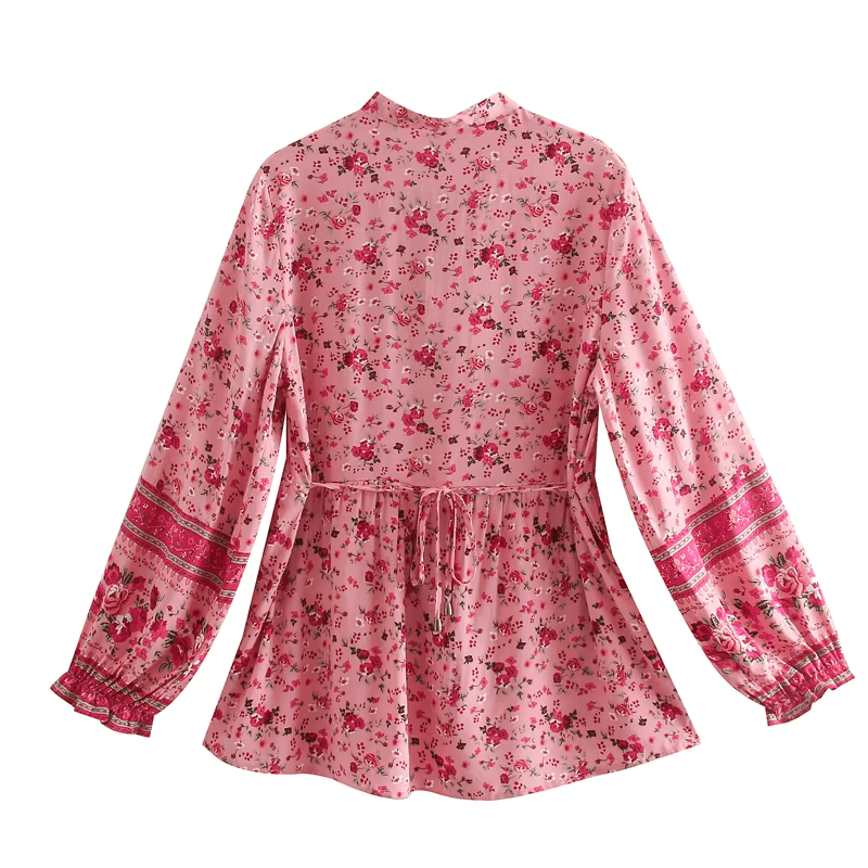 Pozwól się oczarować kwiatowej, boho tunice Rafaela od Looksy, która emanuje romantyczną i naturalną elegancją. Delikatny kwiatowy wzór oraz swobodny krój tworzą lekką i kobiecą sylwetkę. Dekolt w serek ozdobiony małymi guziczkami i finezyjną kokardką dodaje subtelnej nuty wyrafinowania. Uszyta z lekkiego i przyjemnego materiału, ta tunika jest idealna do codziennego boho chic lub na słoneczne wyjazdy.