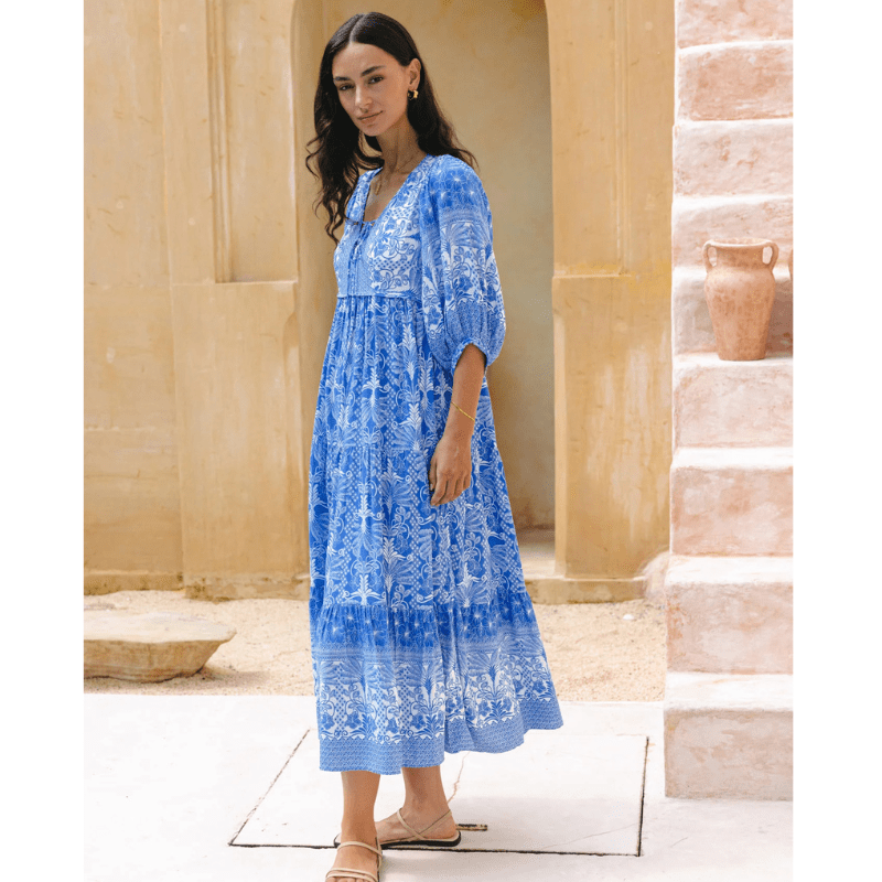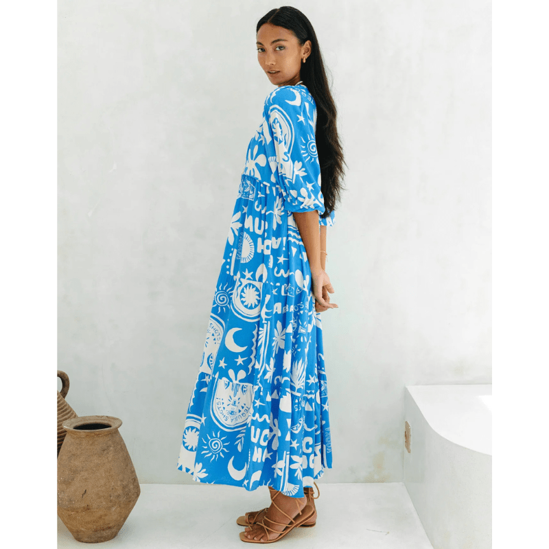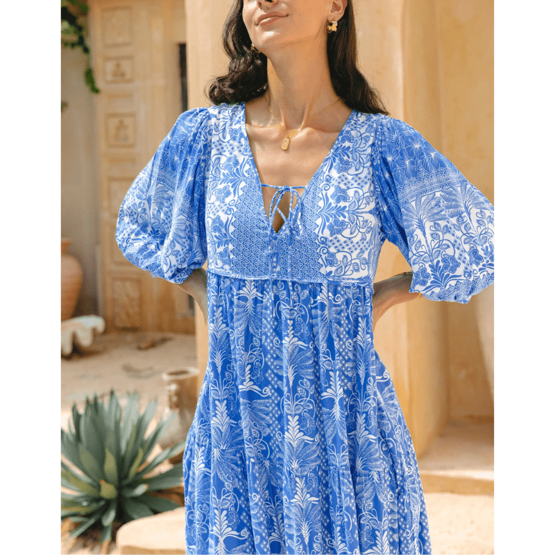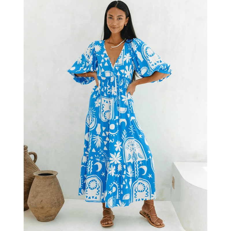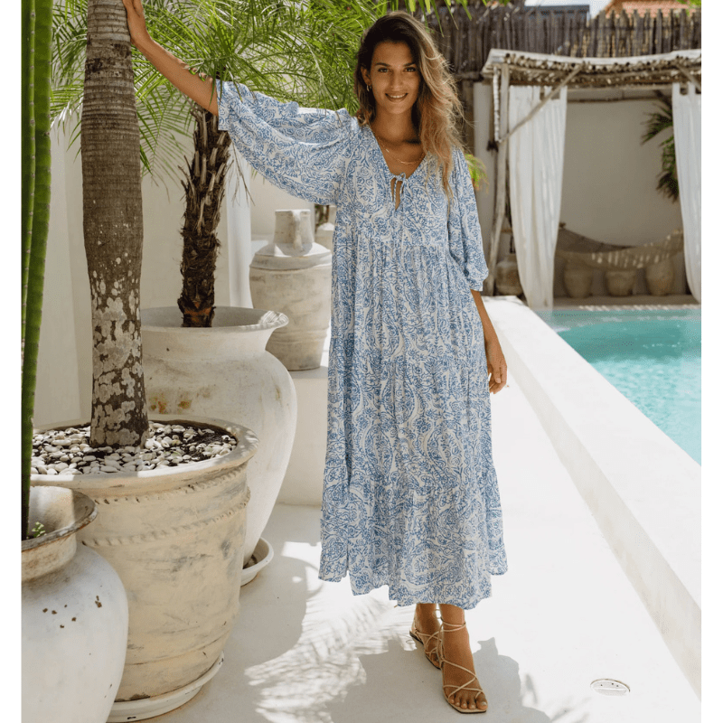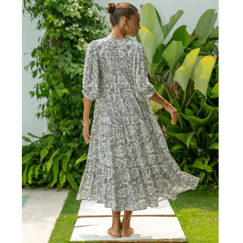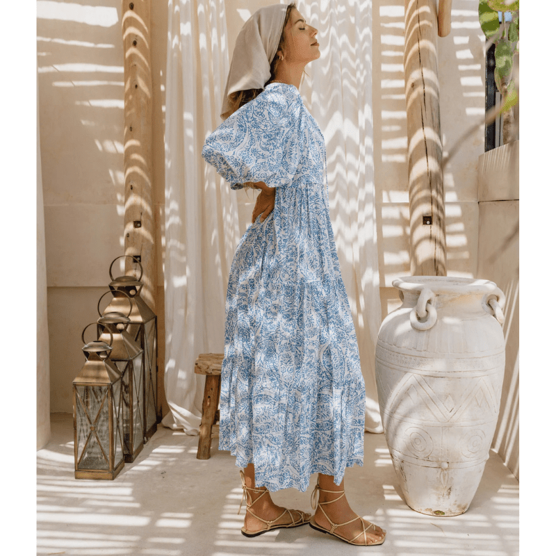 • Design: długa, zwiewna sukienka z warstwowym krojem i boho nadrukiem