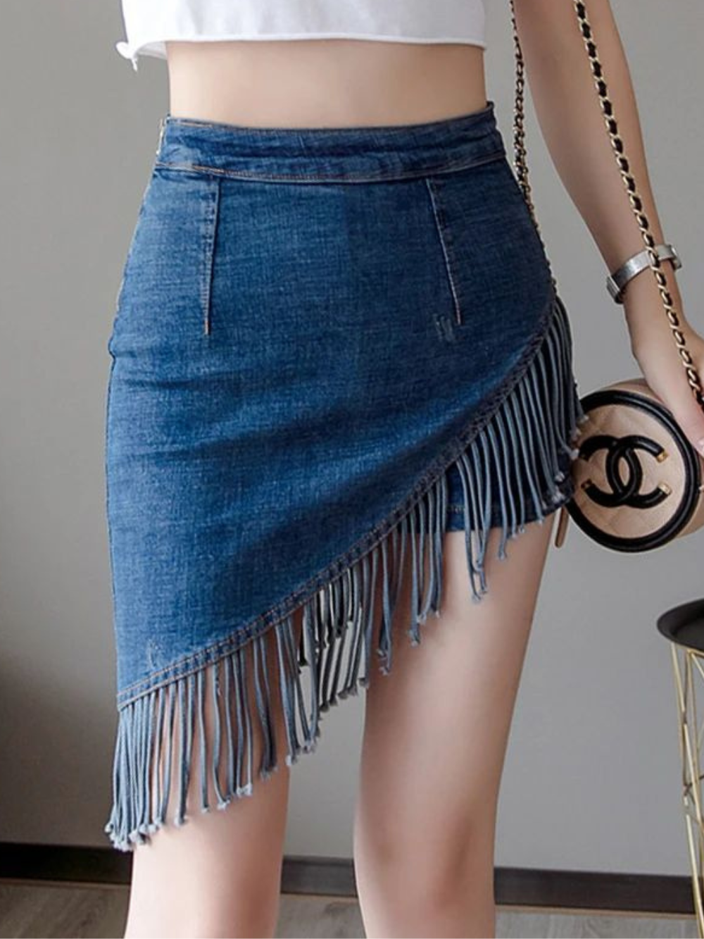 Taylor Spódnico-szorty Damskie – Jeansowa Spódnica z Zabawnymi Frędzlami, Wbudowanymi Szortami i Flatterującym Wysokim Stanem