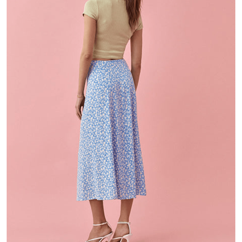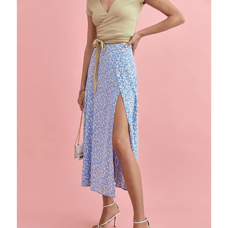 Xaviera Długa Spódnica Damska Looksy – Wysoki Stan, Boczne Rozcięcie i Lekki Wzór Kwiatowy