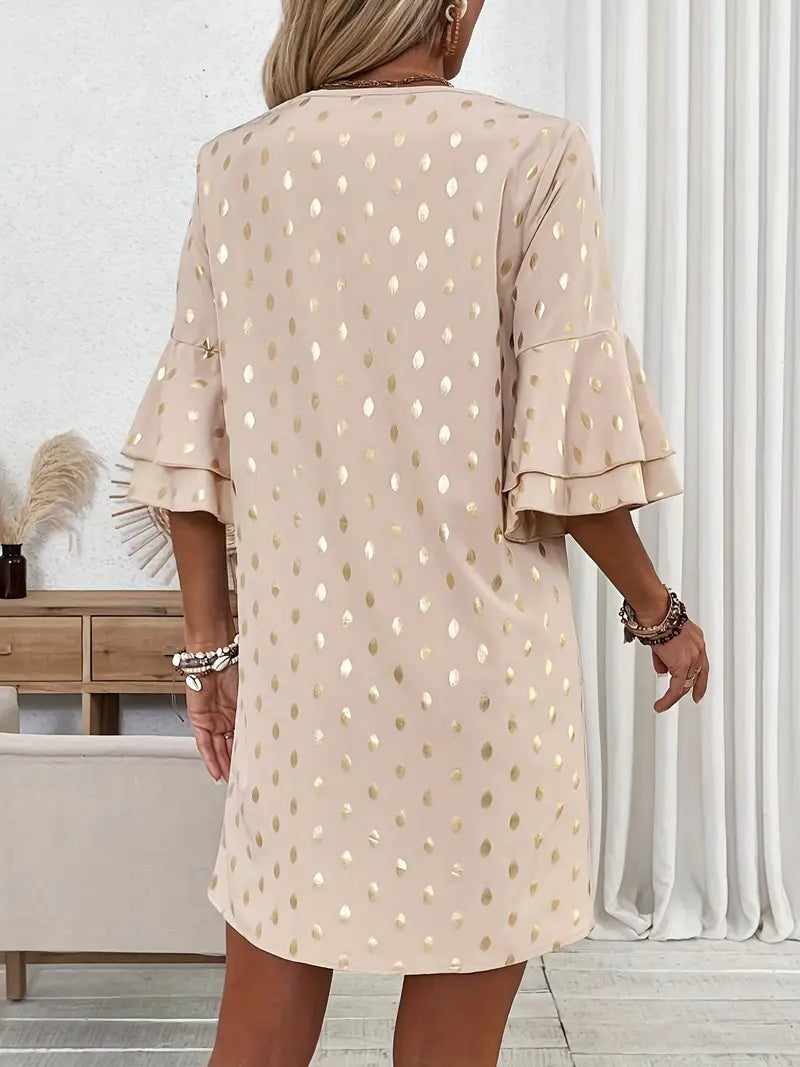Zimowa Sukienka Damska Kaylie – Wygodna Sukienka w Kształcie Litery A z Długim Rękawem i Dekoltem w Serek